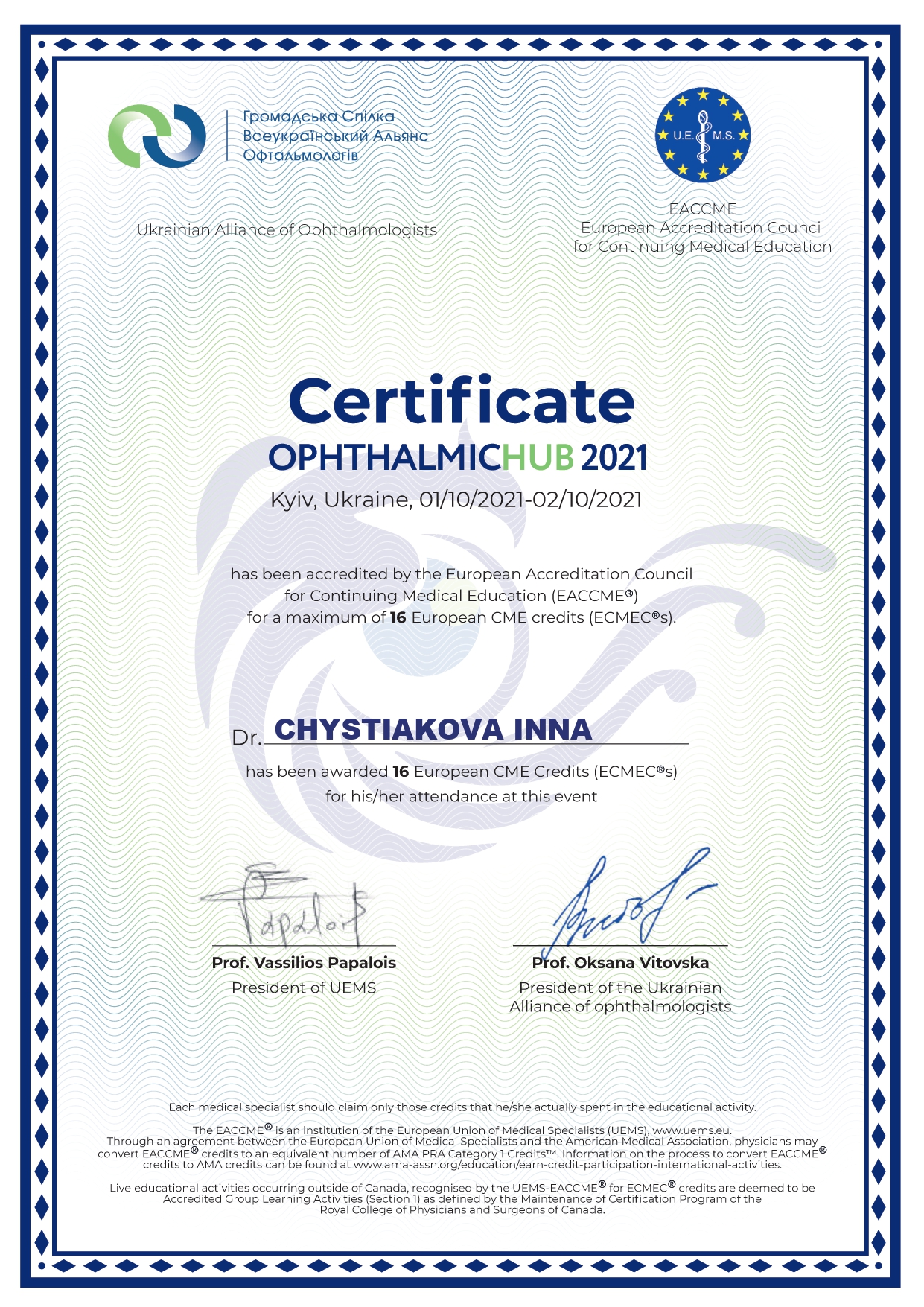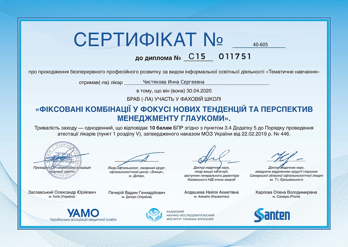 Креативна та небайдужа, завжди відмінно орієнтується в трендах офтальмології. Любить лазери та стріляти.