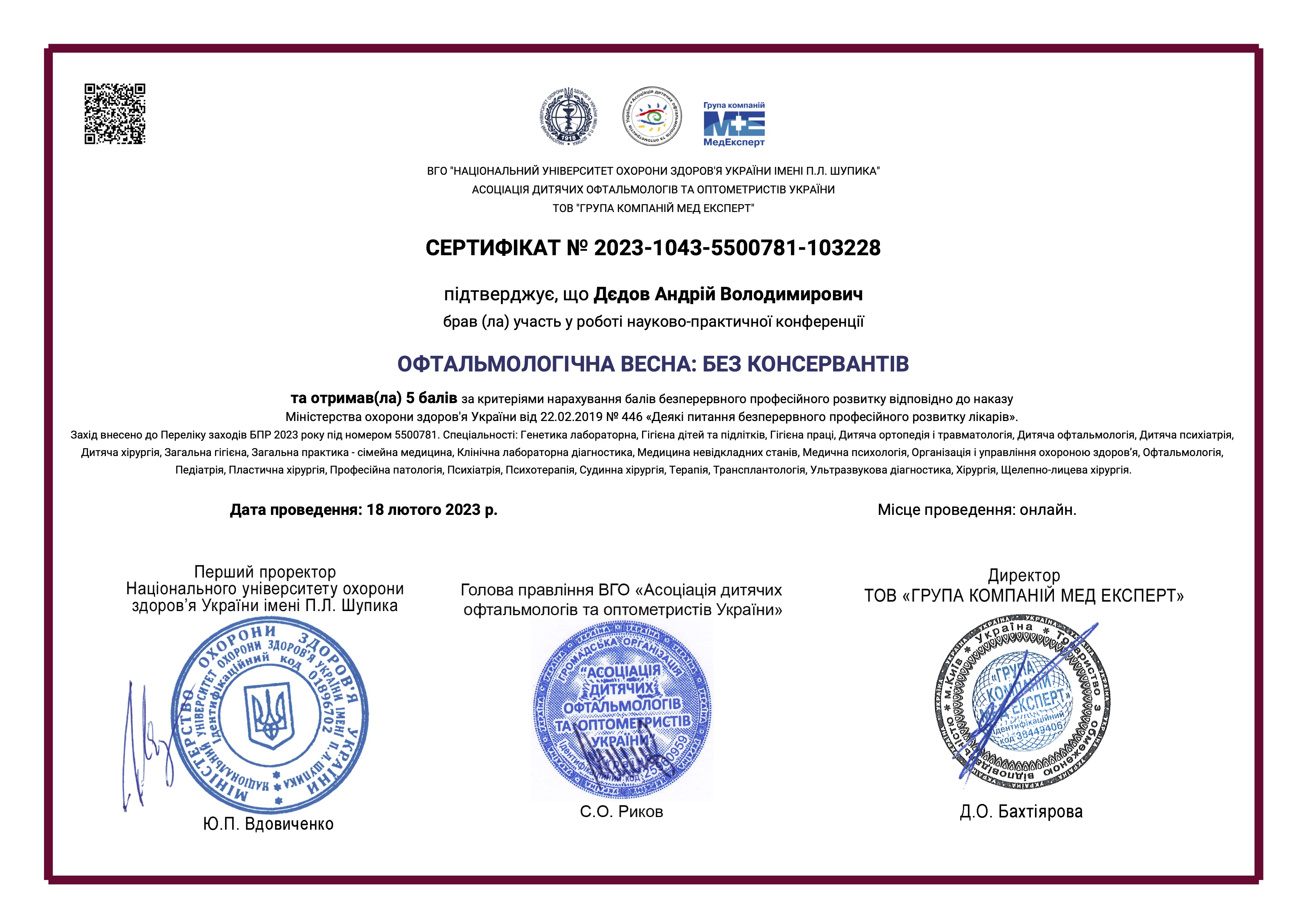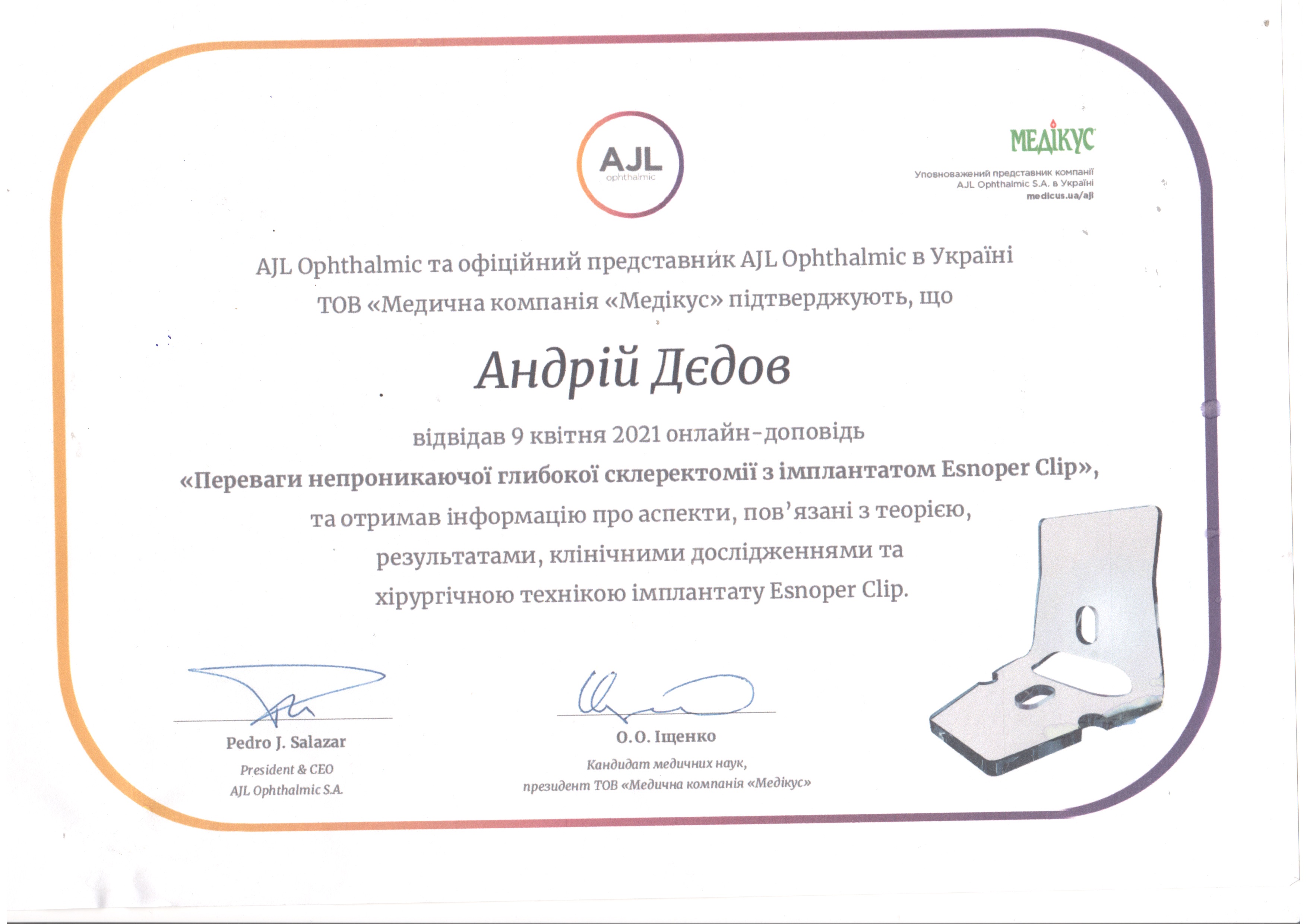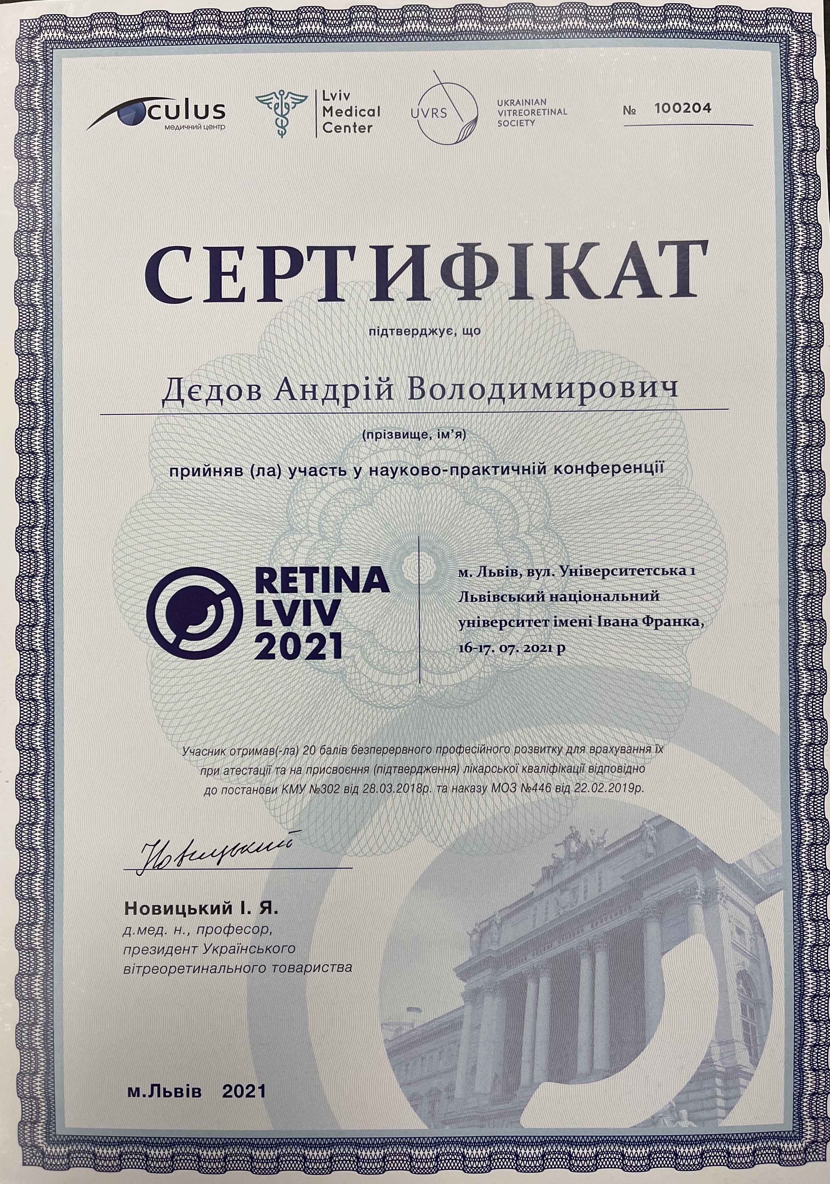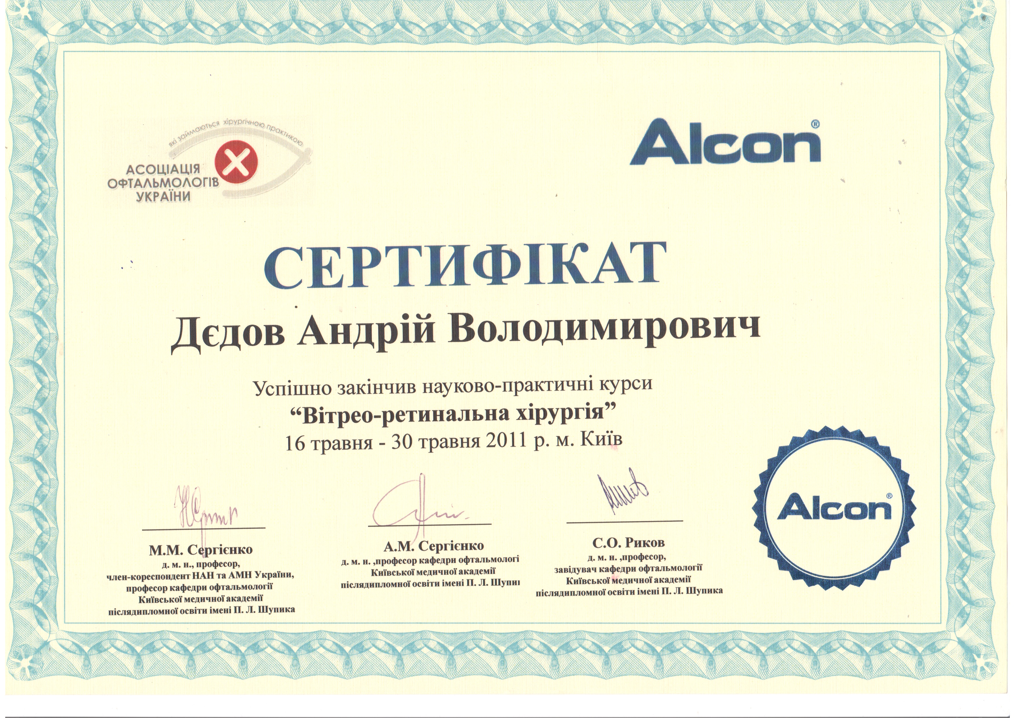 З 2010 р практично "живе" в операційній, виконав понад 5500 операцій на сітківці та кришталику. Завжди має, що запропонувати.